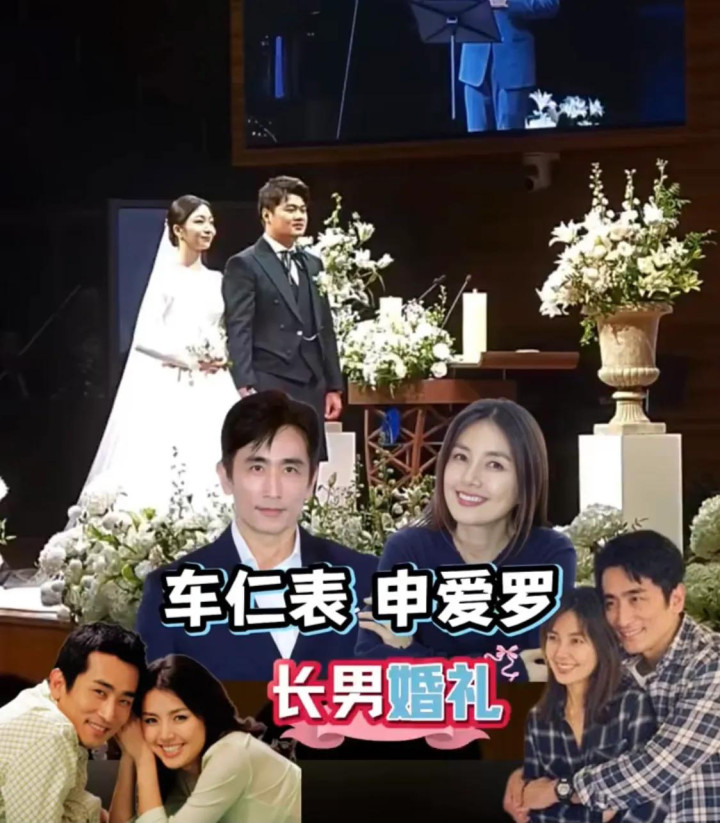 这场婚礼的布置和当年车仁表和申爱罗的婚礼很像。车仁表和申爱罗在1995年举行了婚礼,那时候车仁表正处于颜值巅峰,他们的婚礼比偶像剧还浪漫。车仁表在婚礼上穿的西装还是申爱罗去部队探望他时,用毛线量的尺寸赶制的,两人真是郎才女貌啊。