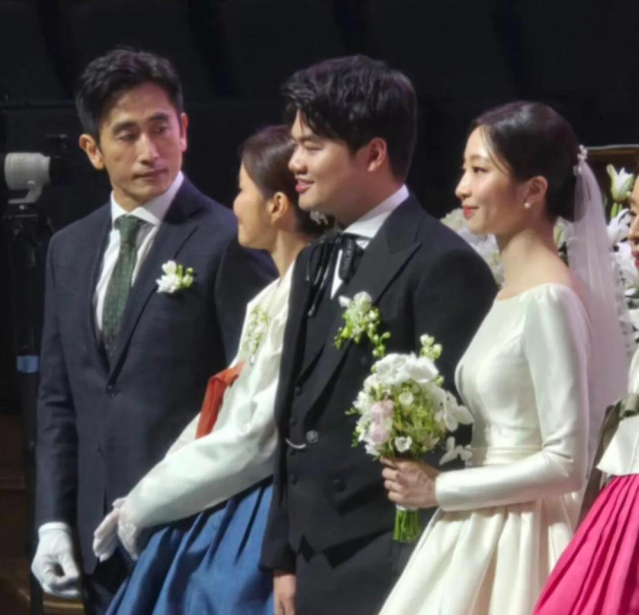 车仁表和申爱罗的长子车正民大婚,车仁表身穿西装出席儿子婚礼,申爱罗身穿韩服,夫妻俩在婚礼上对视很甜,结婚30周年的两人仍然很相爱。车仁表的儿子长得像妈妈,没有车仁表帅。58岁的车仁表有儿媳妇了,但是他帅气依旧,他脸上的皱纹都很有魅力。