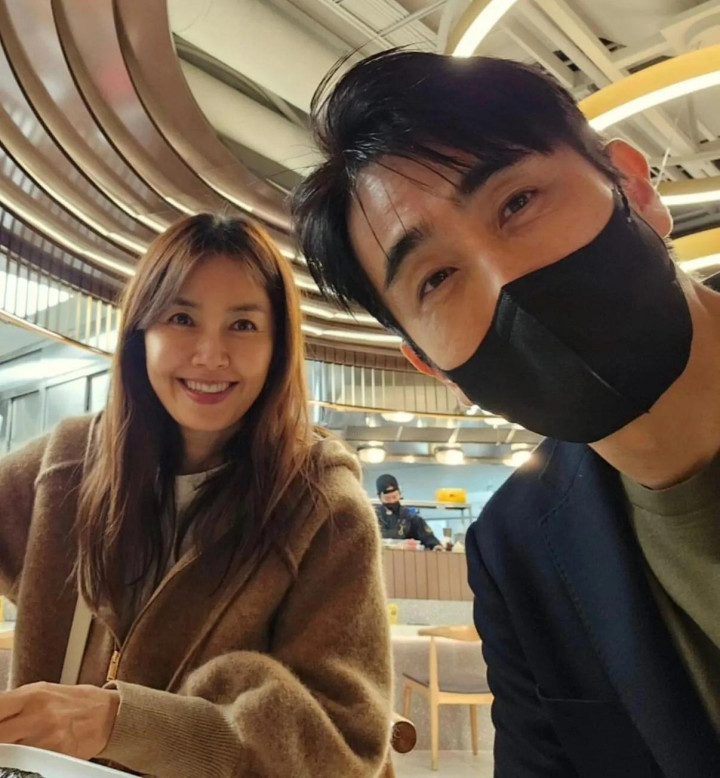 在婚礼上,车仁表和申爱罗作为男方父母一起上台向宾客致谢,车仁表和妻子申爱罗对视了一眼,这一幕很甜。他们因戏结缘,结婚30年的两人仍如新婚般甜蜜。